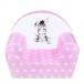 Gyermek fotel New Baby Zebra. A gyerekszobába alkalmas. Puha minőségi anyagból készült. Pamut bevonattal rendelkezik amely levehető és mosható. Szép színekbe, pöttyös és zebra képpel díszitve. Mérete 42x53 cm, háttámla magassága kb 29 cm, szélessége kb 25 cm. Anyaga: bevonat 100% pamut, belső anyaga poliuretán hab.